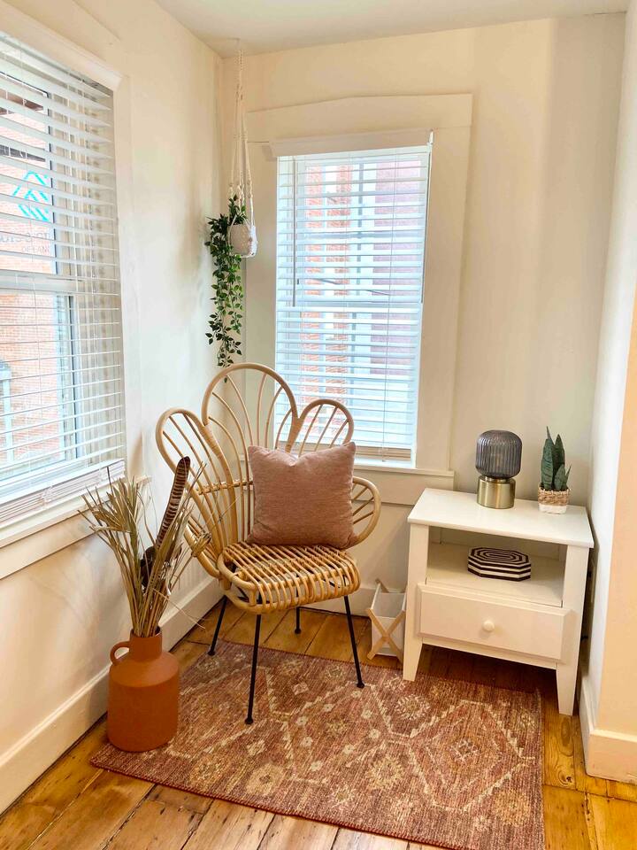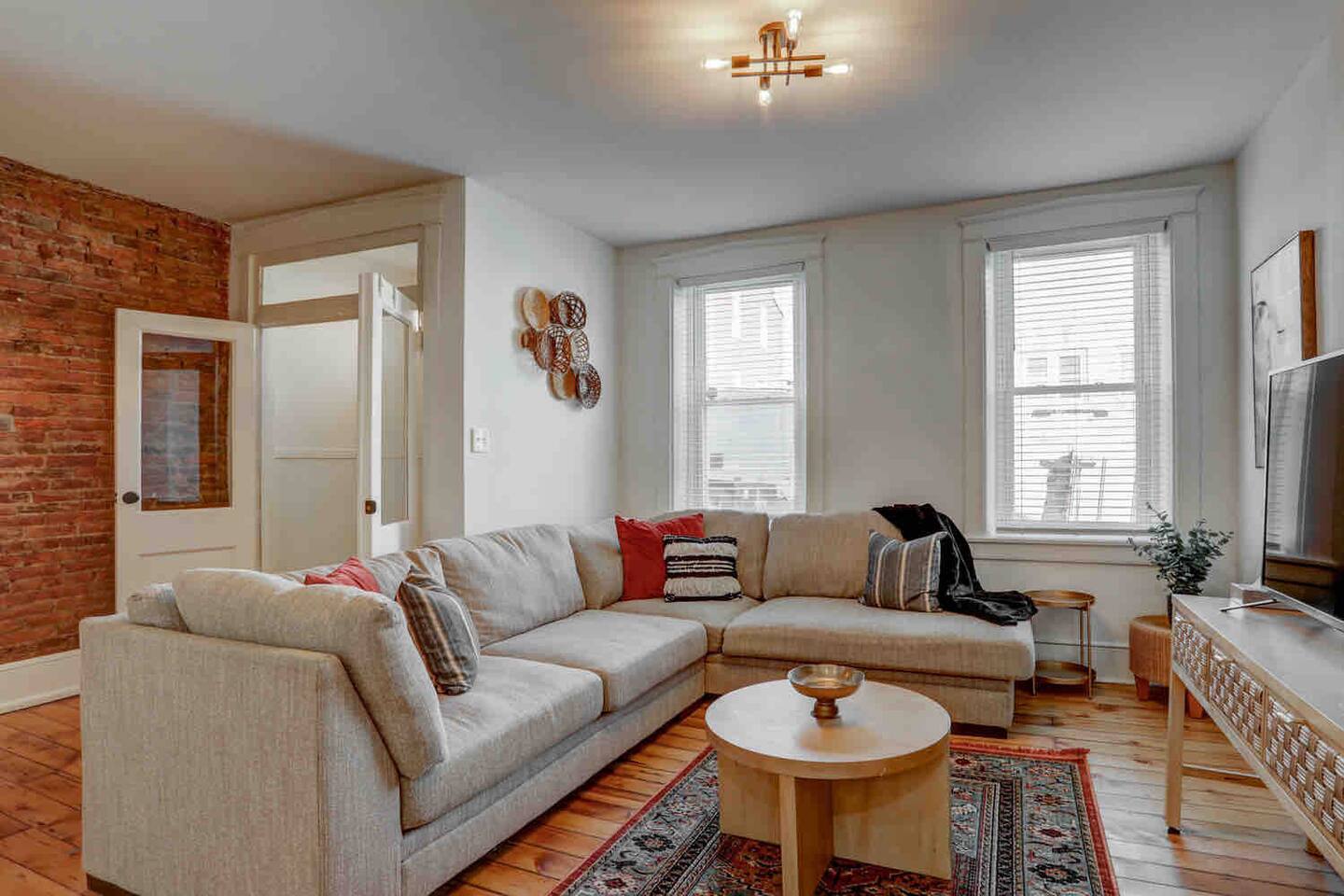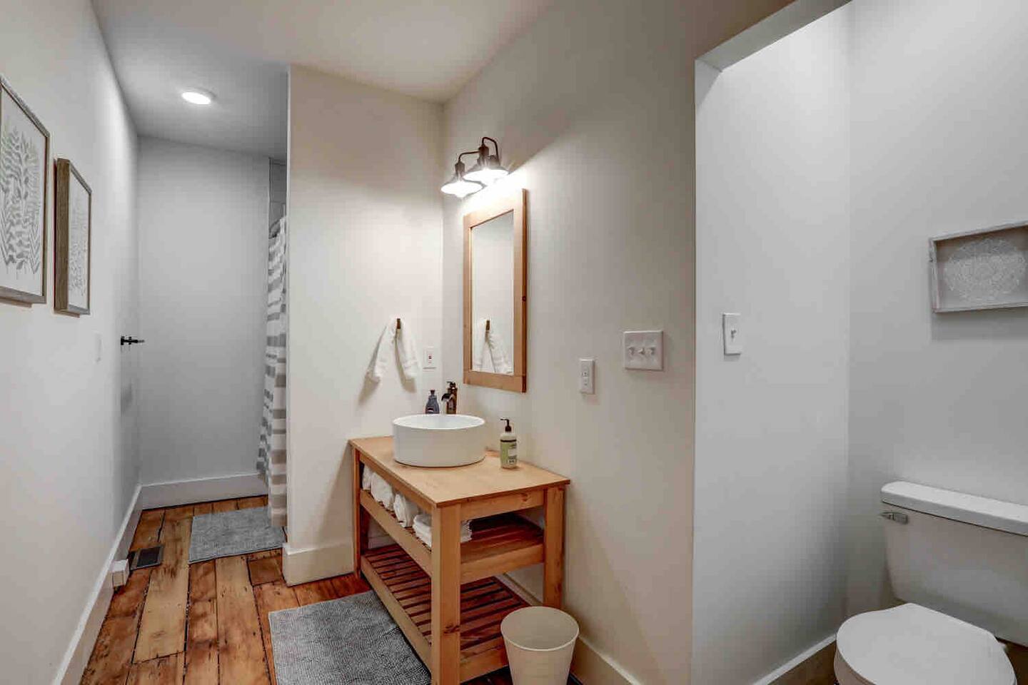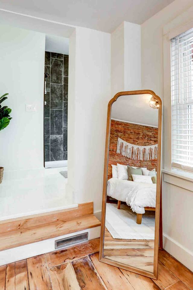 Please note that the hardwood floors are 100+ year old refinished, original hardwoods. Floors may not be 100% smooth, so slippers/socks may be a comfy option.