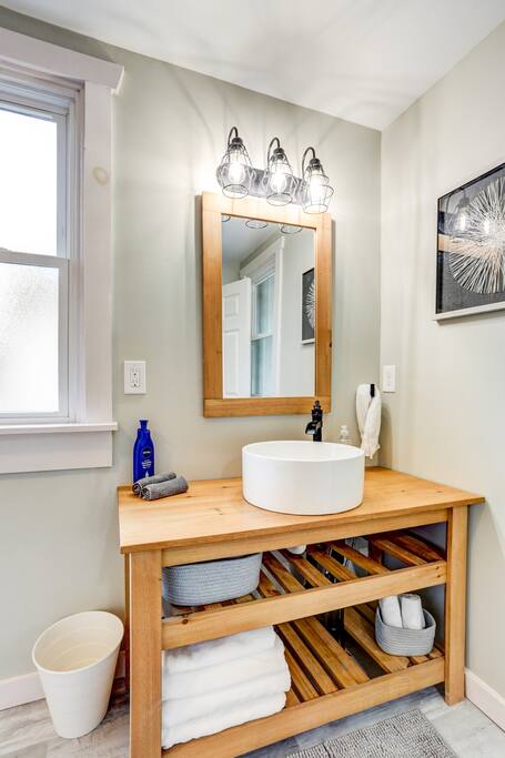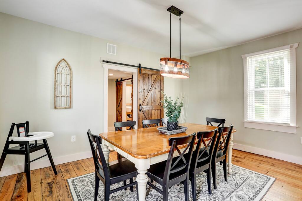 Please note that this home is a 100+ year old farmhouse. The hardwood floors are 100+ year old refinished, original hardwoods. Floors may not be 100% smooth, so slippers/socks may be a comfy option. The stairs to the 2nd floor are also more steep than a newer construction home and can be difficult for guests with mobility issues, so please be aware of that.
