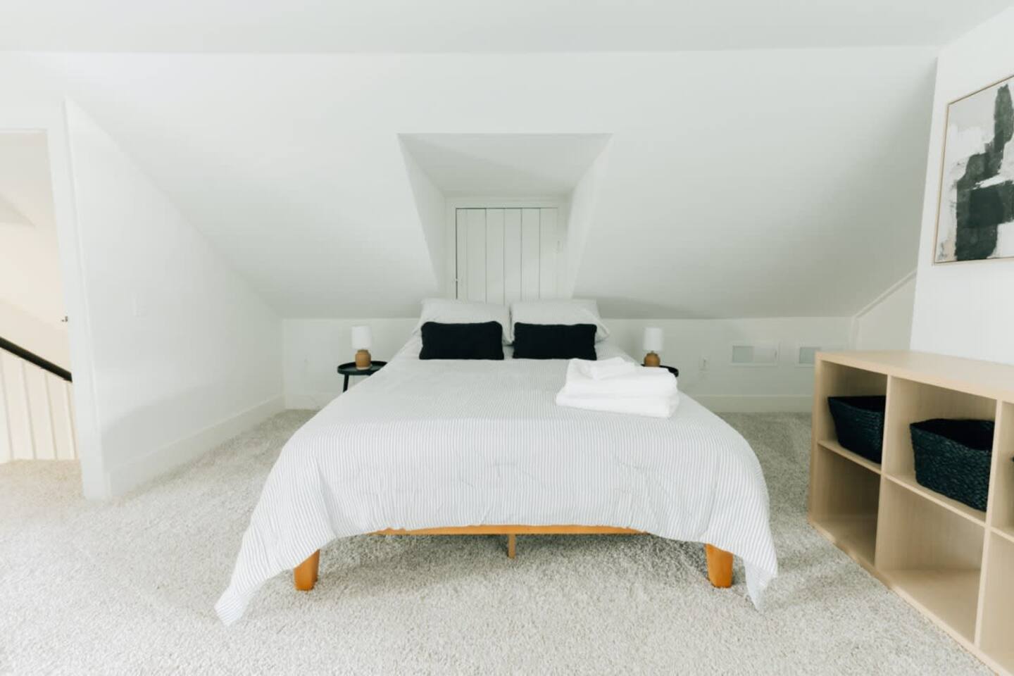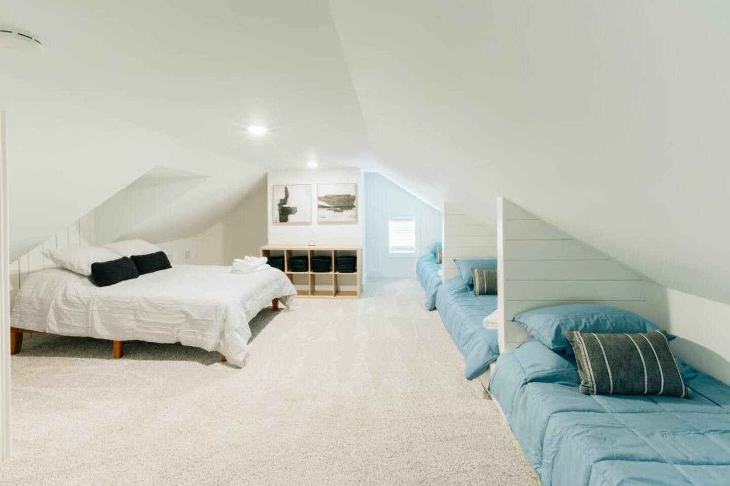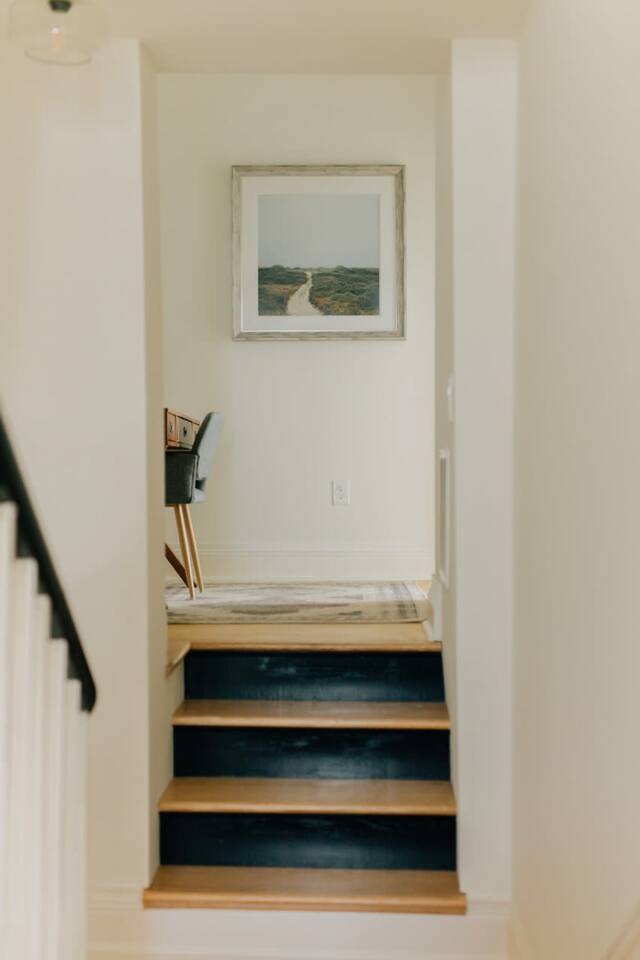 Main floor: - Spacious living room - Large dining room with seating for 10 - Well equipped kitchen with island seating - Half bathroom - Laundry closet with washer and dryer 2nd floor: Master bedroom - King bed - Attached private full bathroom with shower and soaking tub - Desk and chair 2nd bedroom - Queen bed 3rd bedroom -Queen bed Full bathroom with tub/shower 3rd floor: 4th bedroom - Queen bed - Three built-in twin beds *The stairway to the 3rd floor has low overhead clearance. Please use caution when going up and down the stairs*