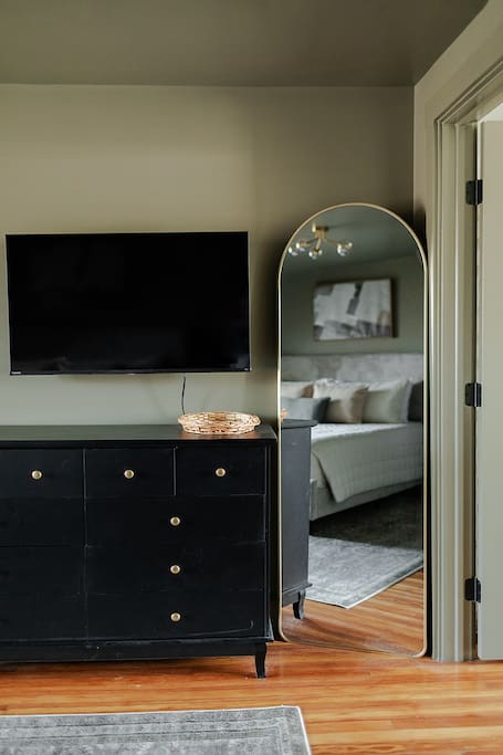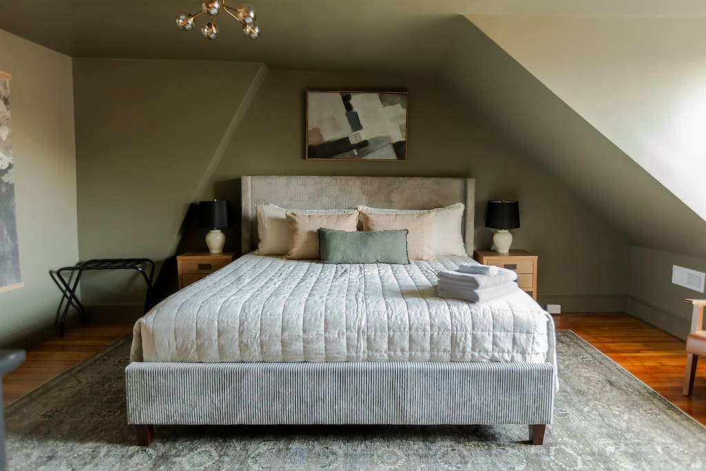 Main floor: - Living room with a 55" TV - Well appointed kitchen with brand new appliances - Dining room with seating for 6 - Half bathroom 2nd floor: Bedroom 1 - Queen bed with closet and dresser Bedroom 3 - Two Twin beds with dresser Full bathroom with shower/tub and vanity 3rd floor: *Please note the stairway to the 3rd floor has low head clearance* Master Bedroom - King bed with private full bathroom featuring a walk-in shower, soaking tub, and double vanity