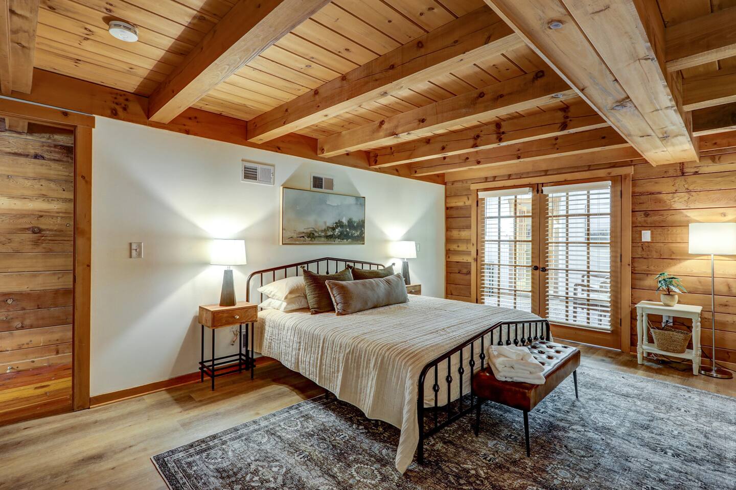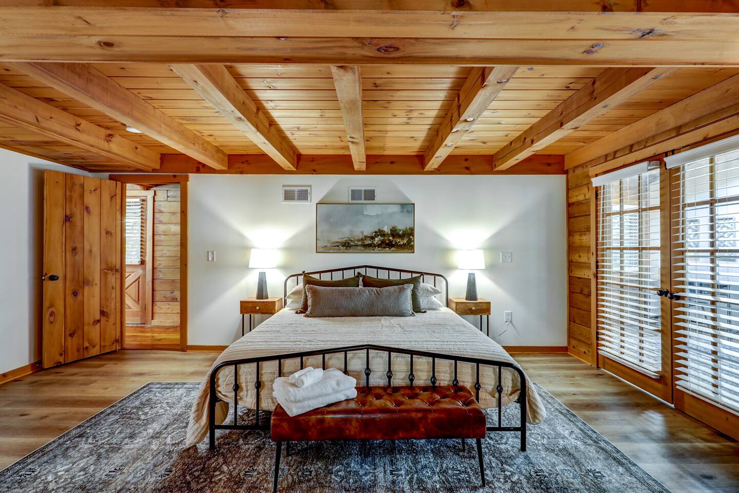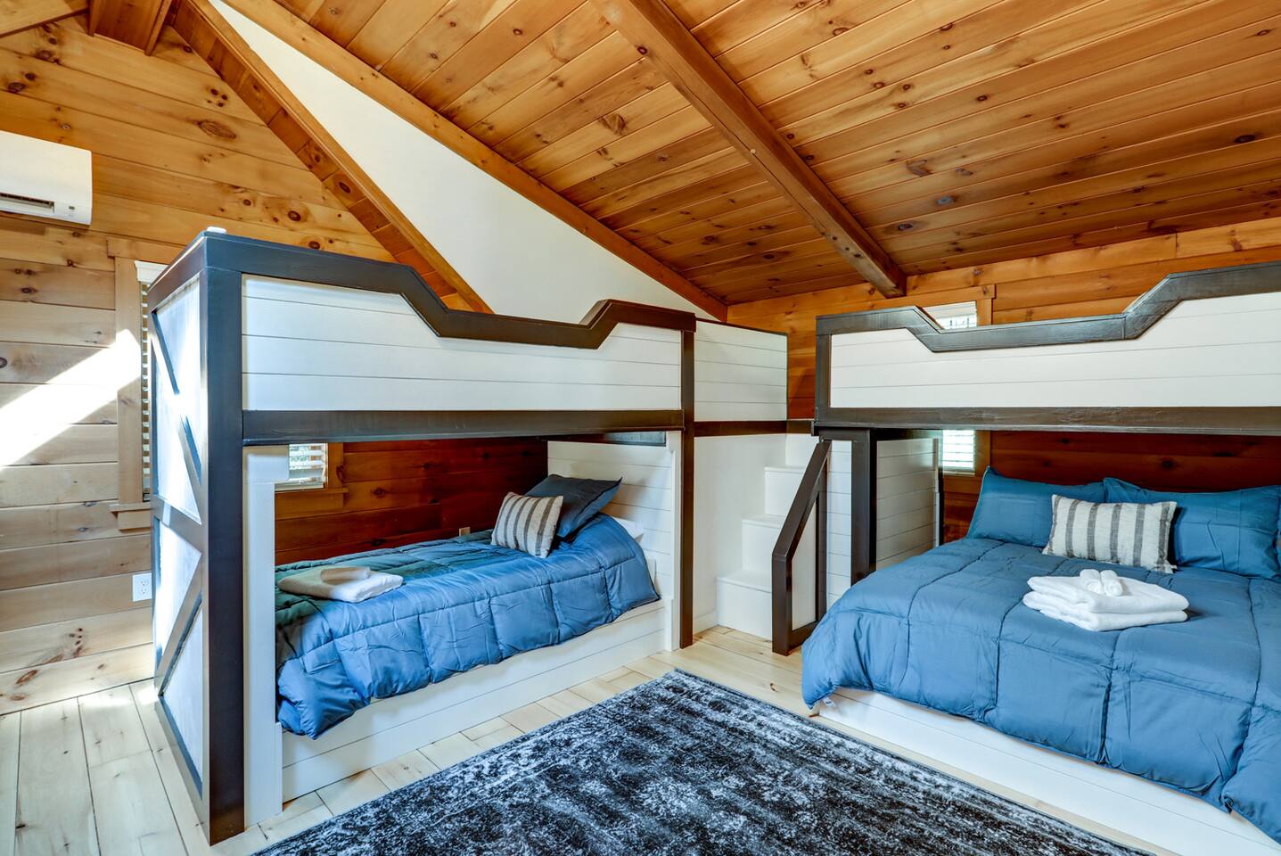 -Master Bedroom - King bed -Bedroom 2 - Queen bed -Bedroom 3 - Queen bed -Upstairs Bedroom - Bunk beds with 3 twins and a full -Upstairs Loft - Sofa bed -Two twin cot beds are stored in the master closet and are available to be placed wherever you'd like