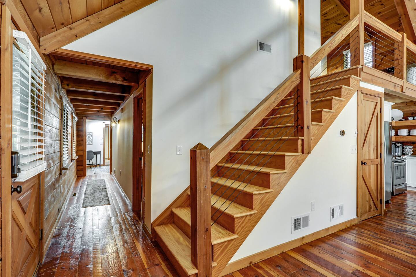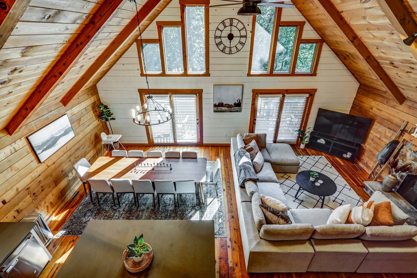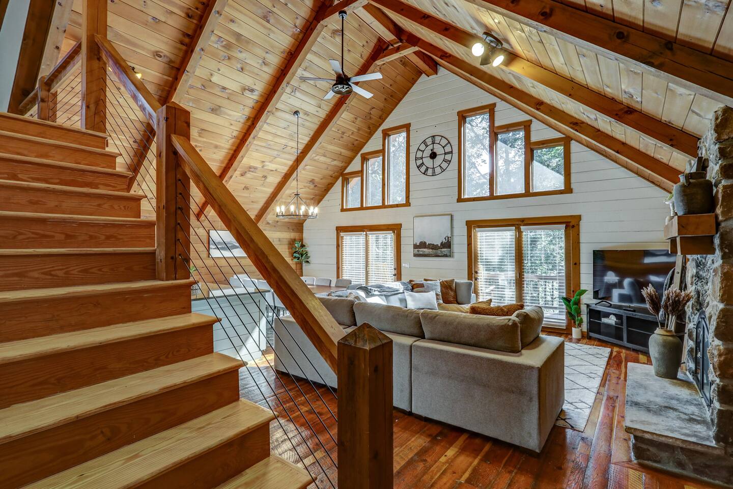 -Master Bedroom - King bed -Bedroom 2 - Queen bed -Bedroom 3 - Queen bed -Upstairs Bedroom - Bunk beds with 3 twins and a full -Upstairs Loft - Sofa bed -Two twin cot beds are stored in the master closet and are available to be placed wherever you'd like